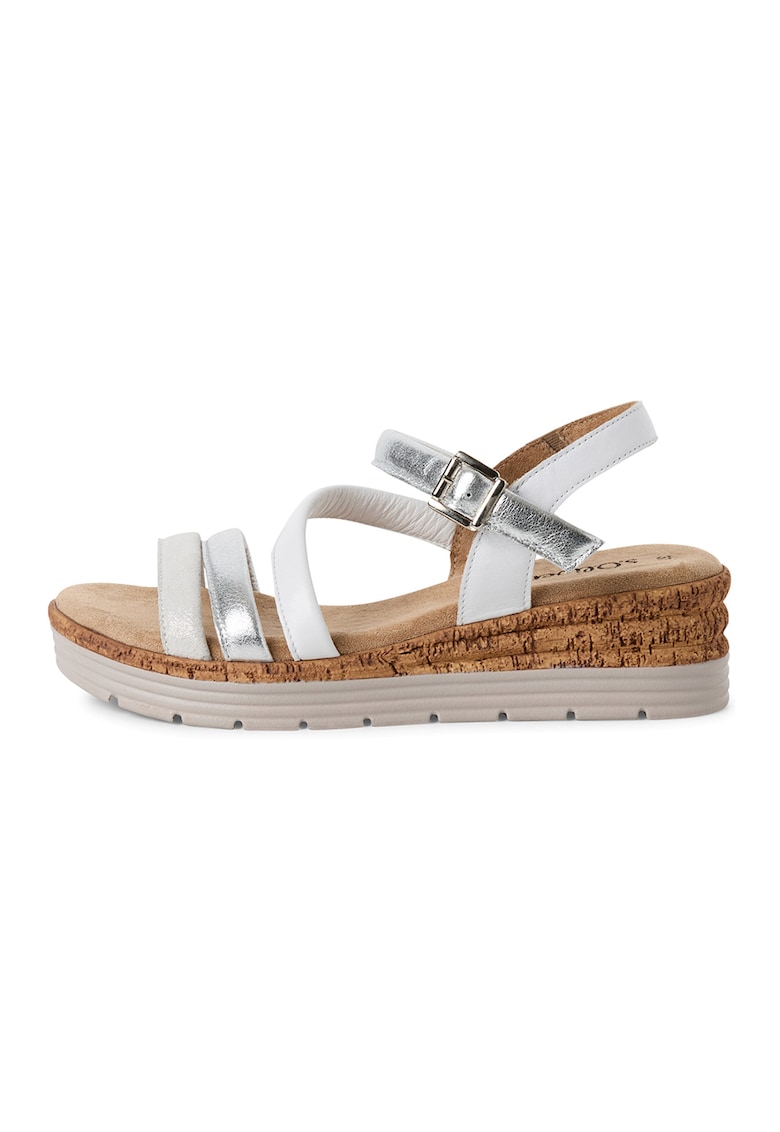 - argintiu Material: piele naturala Imprimeu: uni Stil: casual Varf: rotund Tip talpa: wedge Culoare elemente metalice: argintiu Sistem inchidere: catarama Compozitie Partea superioara: piele Material interior: textil Material talpa: alte materiale Dimensiuni Platforma spate: 4 cm