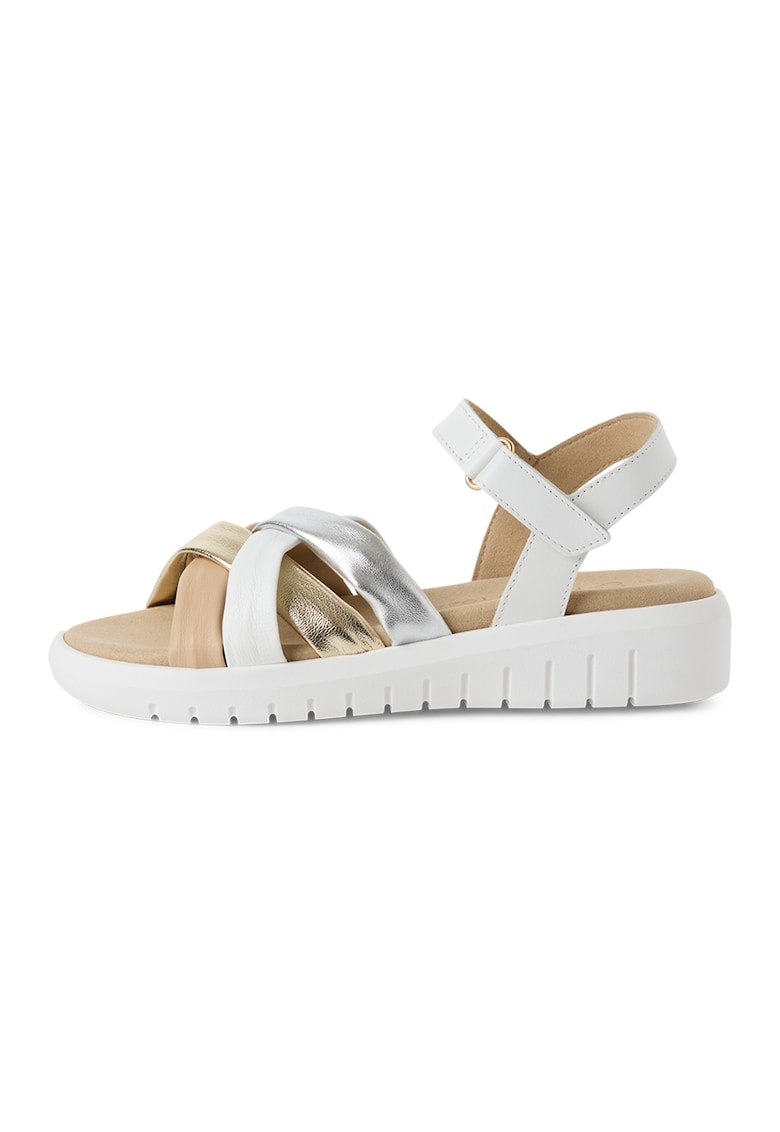 - argintiu Material: piele naturala Imprimeu: uni Stil: casual Varf: rotund Tip talpa: wedge Culoare elemente metalice: auriu Sistem inchidere: velcro Compozitie Partea superioara: piele Material interior: alte materiale Material talpa: alte materiale Dimensiuni Inaltime toc: 4 cm