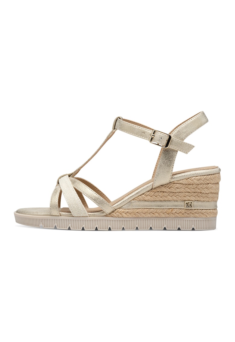 - sintetic Imprimeu: uni Stil: casual Tip talpa: wedge Culoare elemente metalice: auriu Sistem inchidere: catarama Compozitie Partea superioara: alte materiale