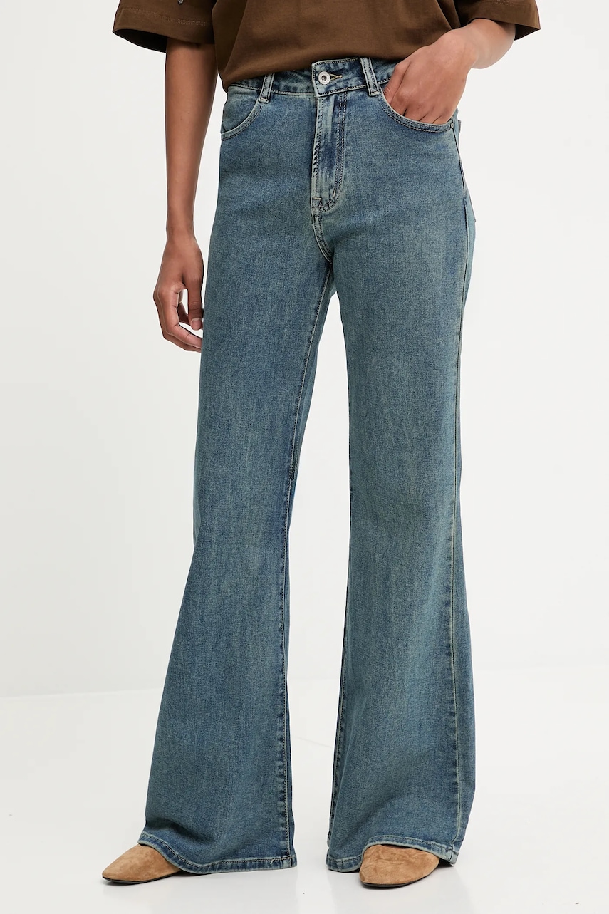 - Model cu talie ridicata si inchidere cu nasture si fermoar.