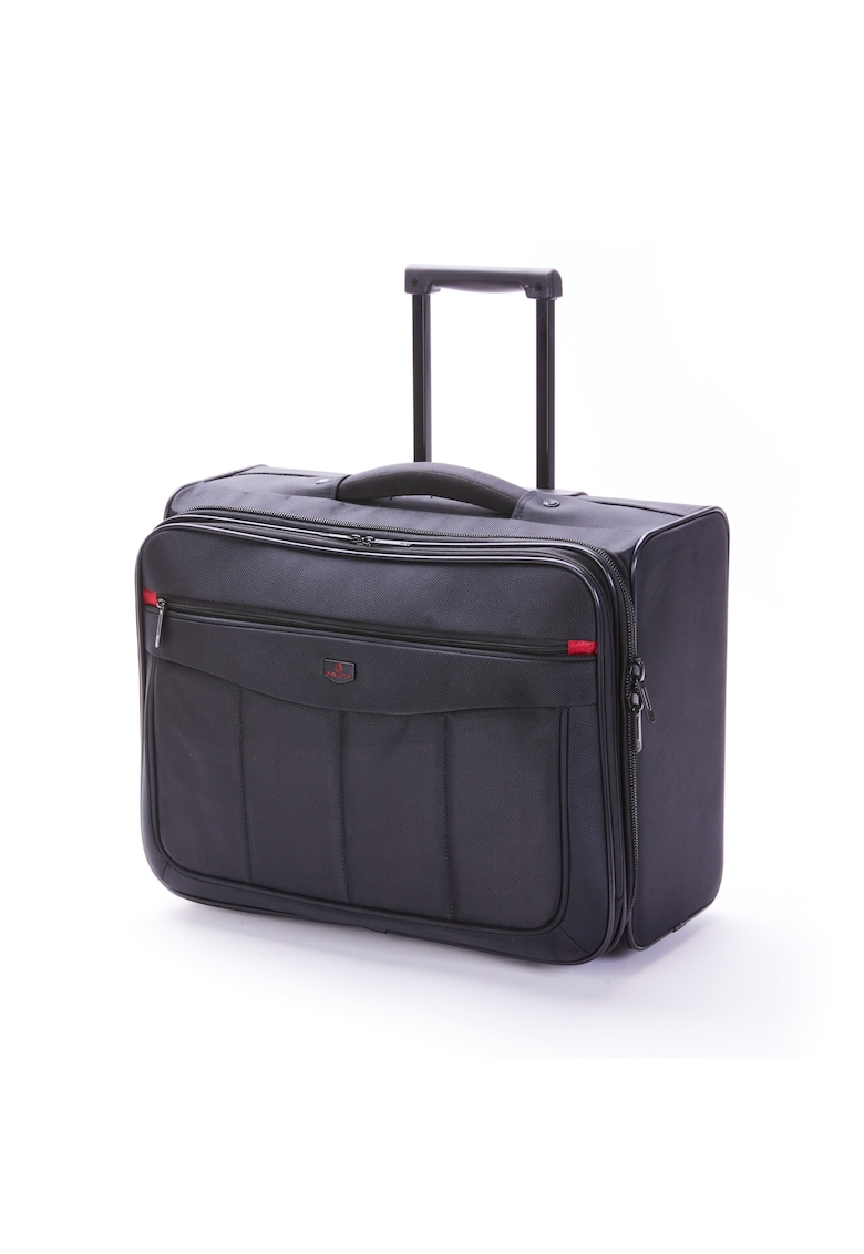 Caracteristici Tip: cu roti Culoare: negru Material: nylon Sistem inchidere: fermoar Stil: business Tip compartimente: 2 x buzunar frontal