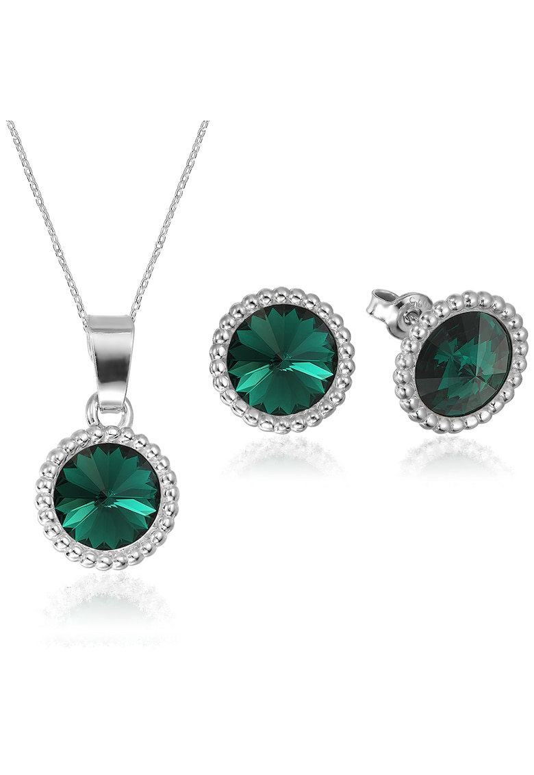 Caracteristici Tip produs: set Material: argint Culoare: verde Continut pachet: 1 set Detalii: cristale Sistem inchidere: tija si surub Linie Brand: e-crystal Ambalaj: cutie de bijuterii Compozitie Compozitie: argint 925 Pietre: swarovski Dimensiuni Lungime: 42 cm