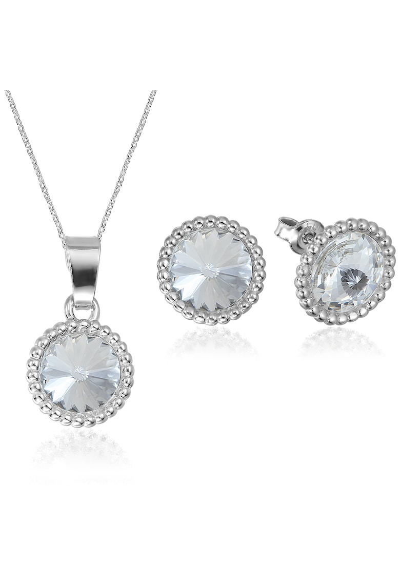 Caracteristici Tip produs: set Material: argint Culoare: alb Continut pachet: 1 set Detalii: cristale Sistem inchidere: tija si surub Linie Brand: e-crystal Ambalaj: cutie de bijuterii Compozitie Compozitie: argint 925 Pietre: swarovski Dimensiuni Lungime: 42 cm