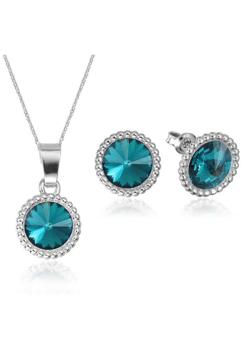Caracteristici Tip produs: set Material: argint Culoare: acvamarin Continut pachet: 1 set Detalii: cristale Sistem inchidere: tija si surub Linie Brand: e-crystal Ambalaj: cutie de bijuterii Compozitie Compozitie: argint 925 Pietre: swarovski Dimensiuni Lungime: 42 cm