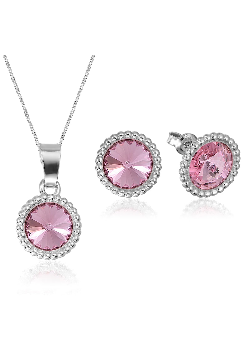 Caracteristici Tip produs: set Material: argint Culoare: roz Continut pachet: 1 set Detalii: cristale Sistem inchidere: tija si surub Linie Brand: e-crystal Ambalaj: cutie de bijuterii Compozitie Compozitie: argint 925 Pietre: swarovski Dimensiuni Lungime: 42 cm