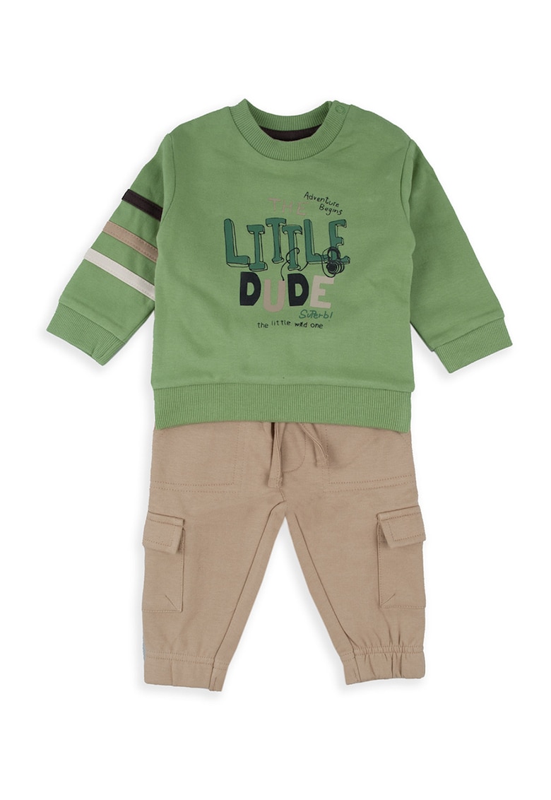 - verde fistic Stil: casual Imprimeu: text Material: bumbac Decolteu: la baza gatului Lungime maneca: maneca lunga Lungime pantaloni: lungi Colectie: primavara