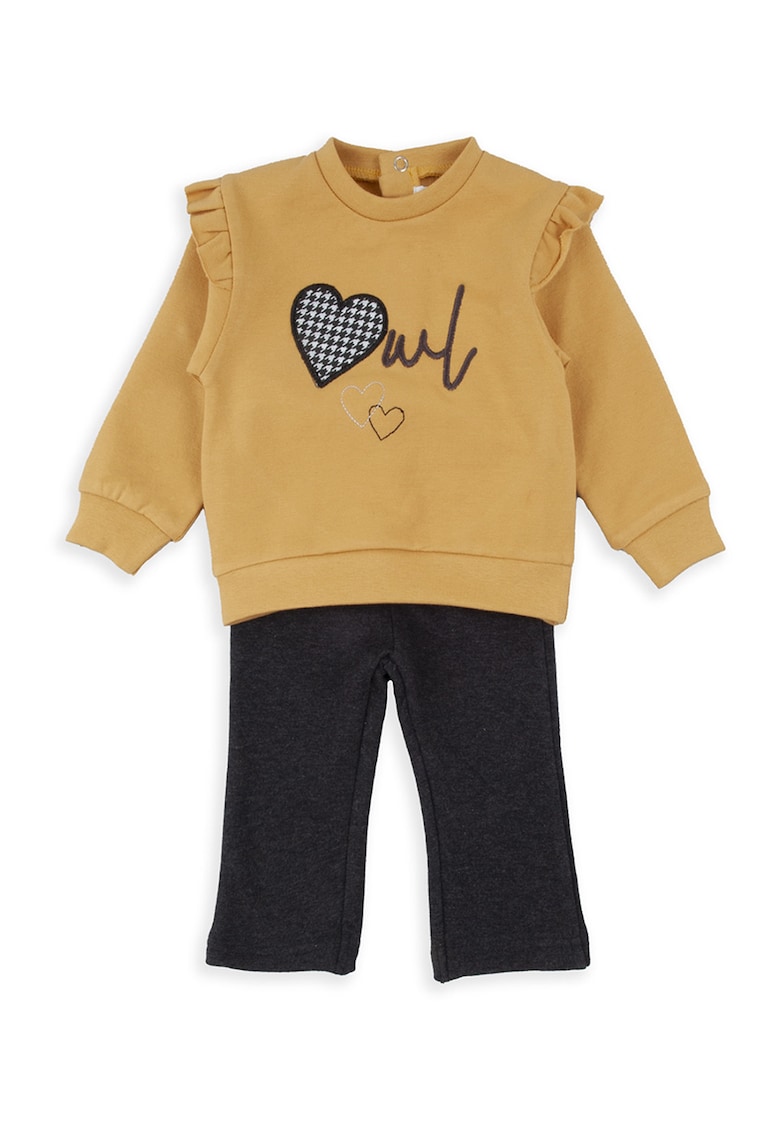 - mustar Stil: casual Imprimeu: uni Material: bumbac Decolteu: la baza gatului Lungime maneca: maneca lunga Lungime pantaloni: lungi Colectie: primavara