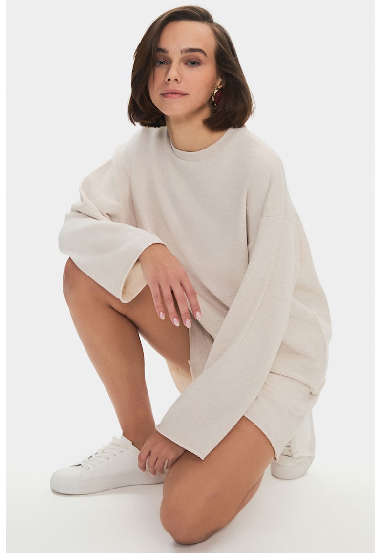 Caracteristici Continut pachet: bluza sport si pantaloni scurti Culoare: bej deschis Imprimeu: uni Material: sintetic