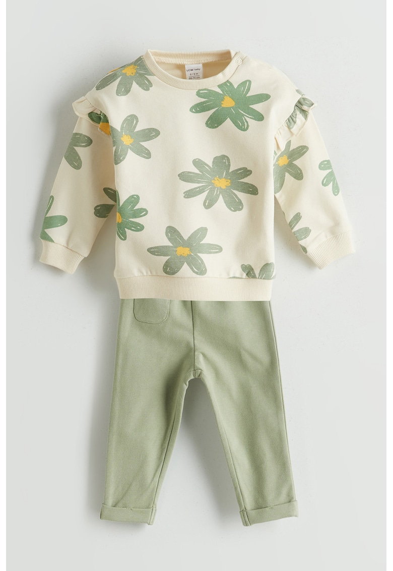 Caracteristici Continut pachet: bluza si pantaloni Culoare: verde fistic Stil: casual Imprimeu: floral Croiala: regular fit Material: bumbac