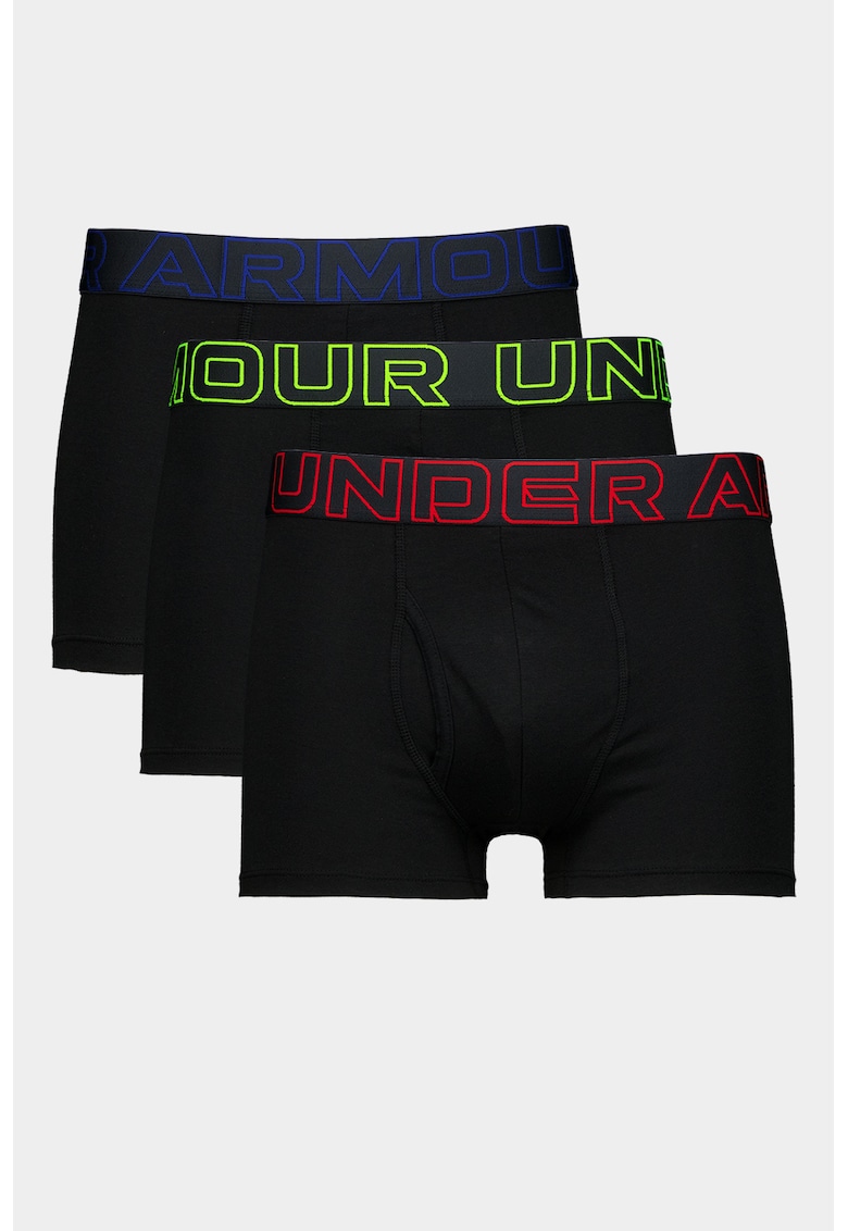 Caracteristici Tip produs: set boxeri Continut pachet: 3 perechi de boxeri Culoare: negru Numar bucati/set: 3 Imprimeu: logo Material: fibre sintetice Detalii: elasticitate pe 4 directii