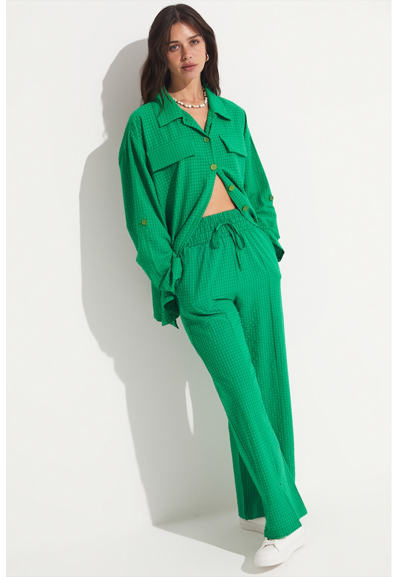 Caracteristici Continut pachet: camasa si pantaloni Culoare: verde marin Imprimeu: carouri Material: poliester