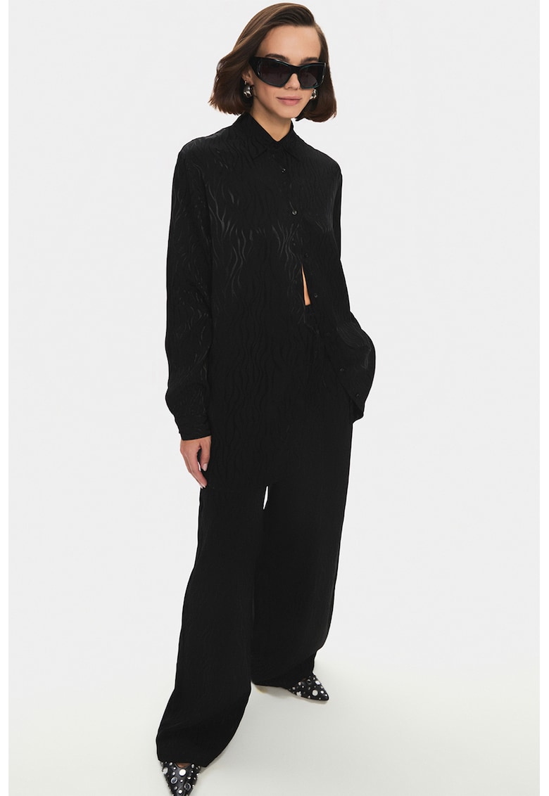Caracteristici Continut pachet: camasa si pantaloni Culoare: negru Imprimeu: uni Material: viscoza