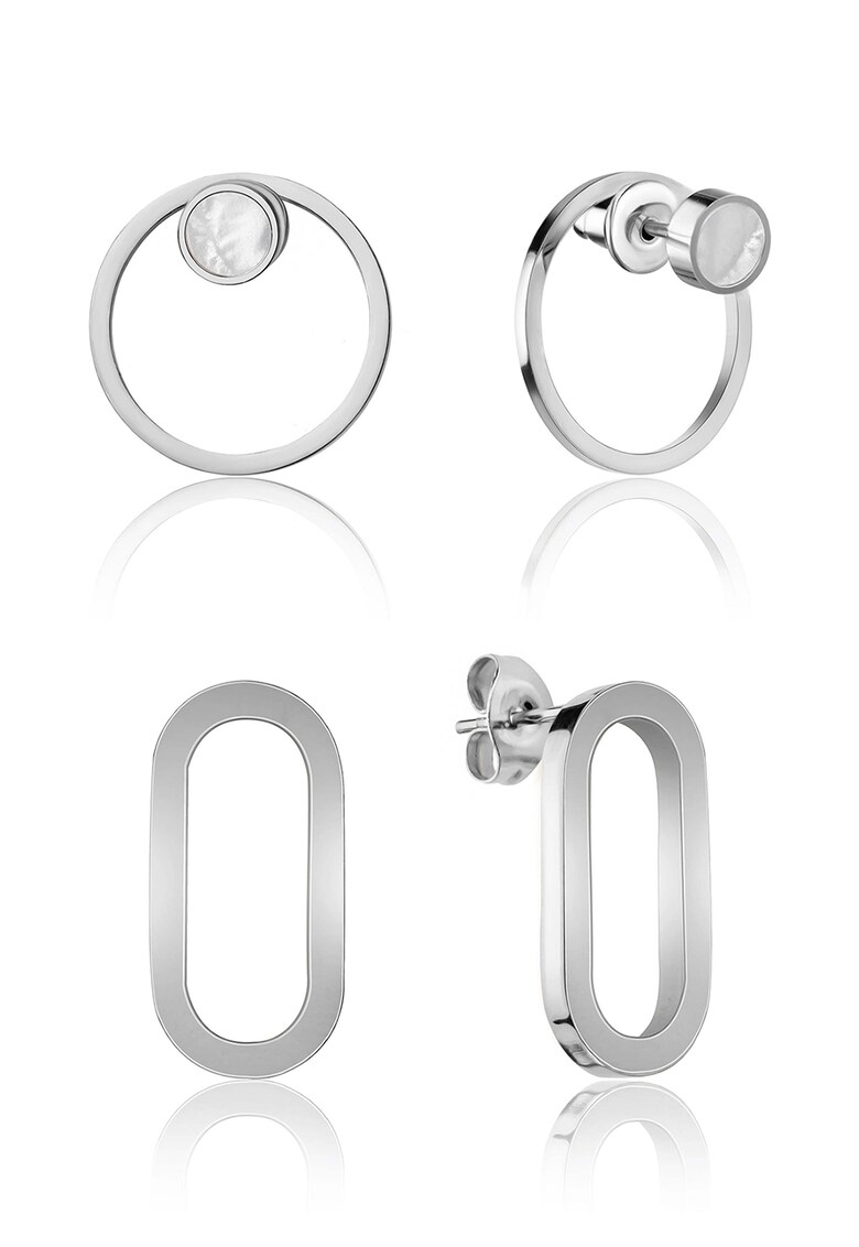 Caracteristici Tip produs: cercei Material: inox Culoare: argintiu Continut pachet: 2 perechi de cercei Linie Brand: emma Ambalaj: produsul se livreaza in ambalaj personalizat. Compozitie Compozitie: otel inoxidabil Pietre: fara pietre Dimensiuni Lungime: 2 cm Informatii suplimentare: a se evita socurile mecanice si termice
