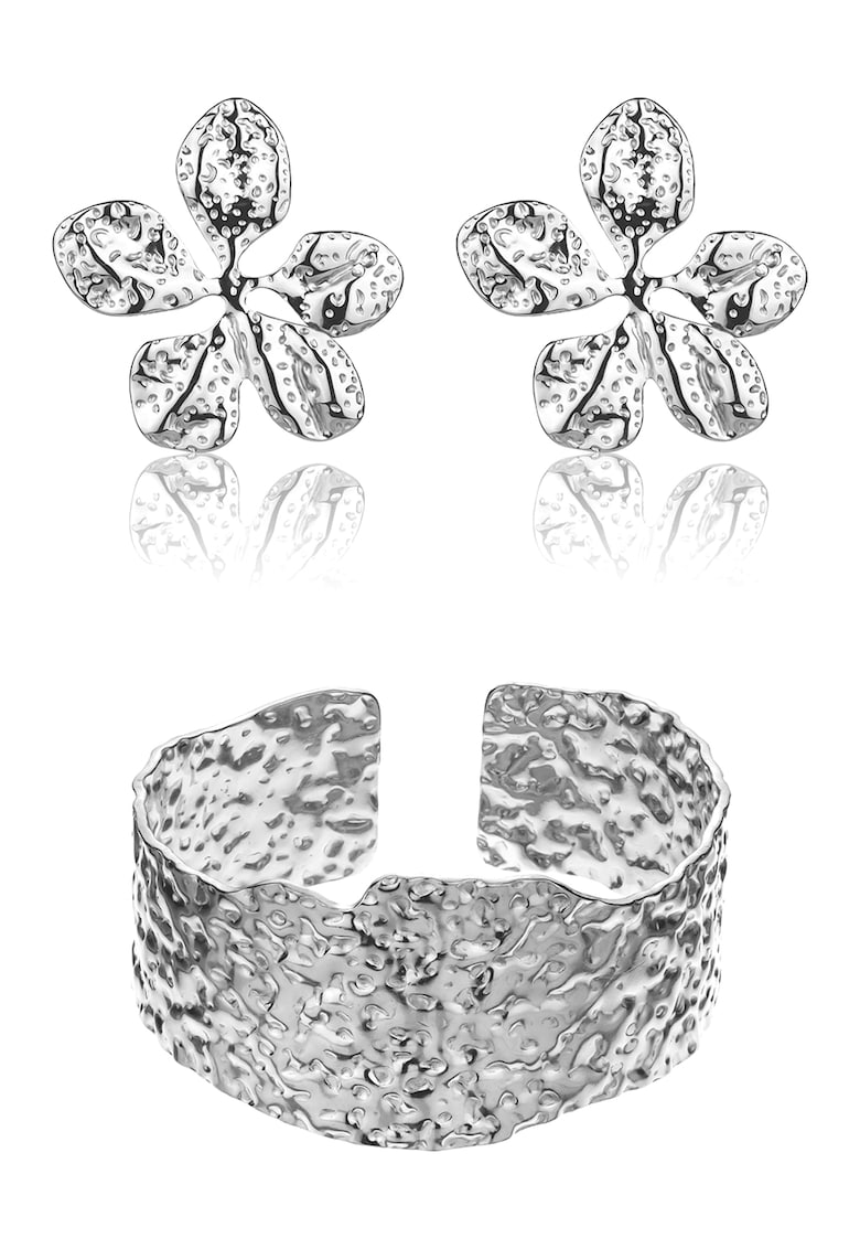 - bratara Material: inox Culoare: argintiu Continut pachet: bratara si cercei Detalii: a se evita lovirea