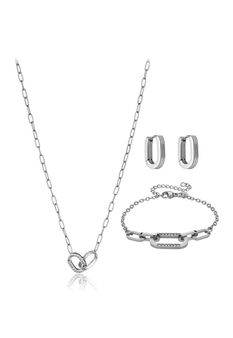 - bratara Material: inox Culoare: argintiu Sistem inchidere: lobster Ambalaj: produsul se livreaza in ambalaj personalizat. Compozitie Compozitie: otel inoxidabil Pietre: cristale Dimensiuni Lungime: 21.5 cm Informatii suplimentare: a se evita lovirea