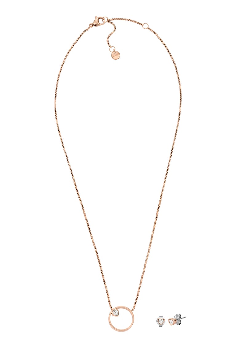 Caracteristici Tip produs: set Material: inox Culoare: argintiu Detalii: lantisor prelungitor Sistem inchidere: lobster Ambalaj: produsul este livrat in ambalaj personalizat. Compozitie Compozitie: otel inoxidabil Pietre: cristale Placaj: placaj ip Dimensiuni Lungime: 40 + 5 cm Informatii suplimentare: a se evita lovirea