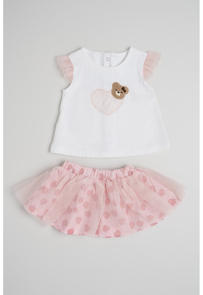 - roz Stil: casual Imprimeu: inimioare Material: bumbac Decolteu: rotund Maneci: cu tul Lungime maneca: maneca scurta Detalii: aplicatie din tul Colectie: primavara