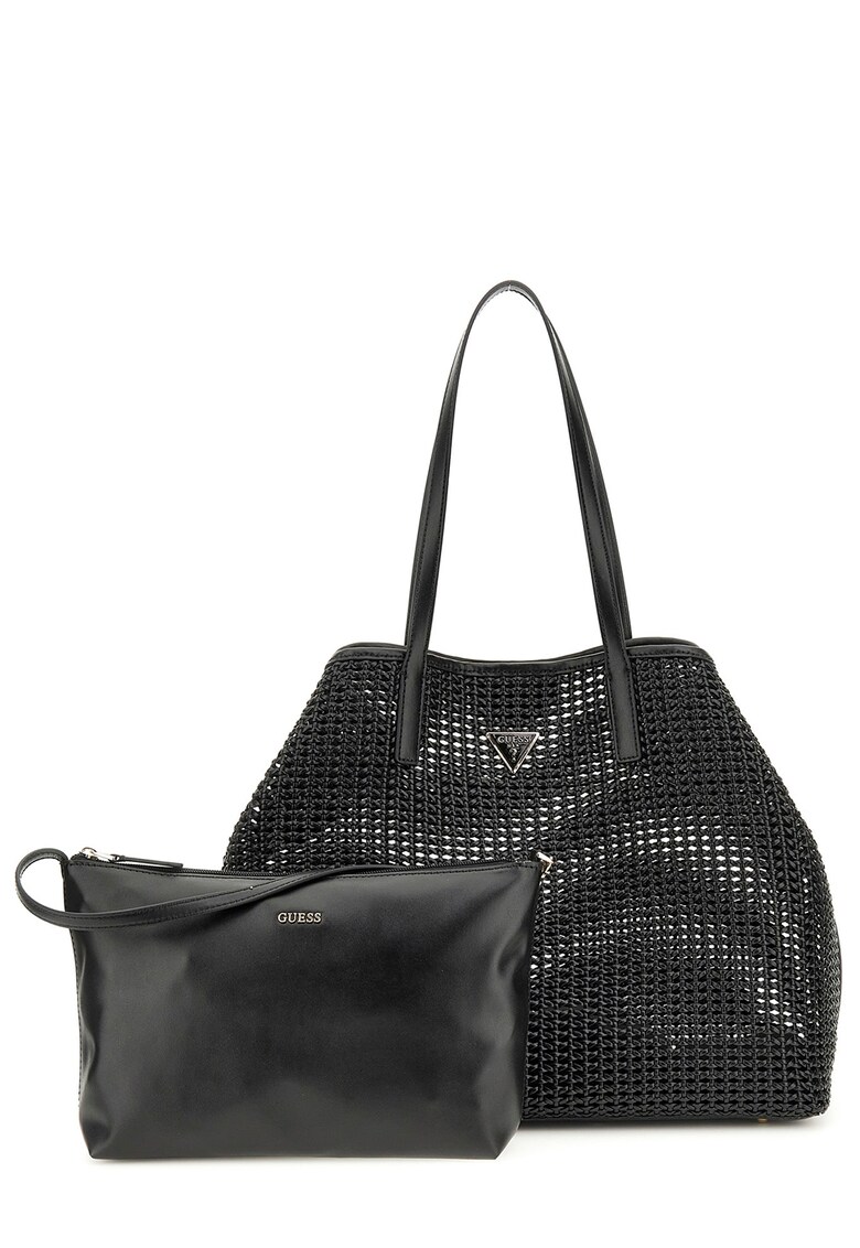 Caracteristici Culoare: negru Material: piele ecologica Model: tote Stil: casual Imprimeu: logo Maner: 2 fixe Compartimente: 1 principal Culoare elemente metalice: auriu Sistem inchidere: capse magnetice Detalii: se livreaza impreuna cu etui Compozitie Exterior: 100% poliuretan Dimensiuni Dimensiune (cm): 31 x 40 x 18 cm