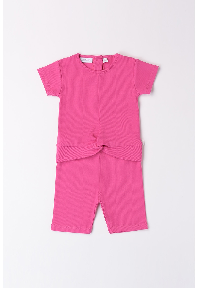 Caracteristici Continut pachet: un tricou si o pereche de pantaloni scurti Culoare: roz Stil: casual Imprimeu: uni Croiala: regular fit Material: sintetic