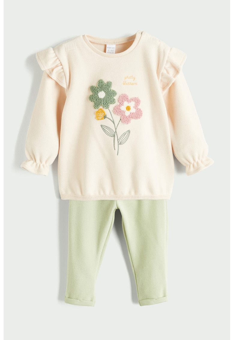 - bumbac Decolteu: la baza gatului Maneci: cu volane Lungime maneca: maneca lunga Lungime pantaloni: lungi Compozitie Exterior: 50% bumbac