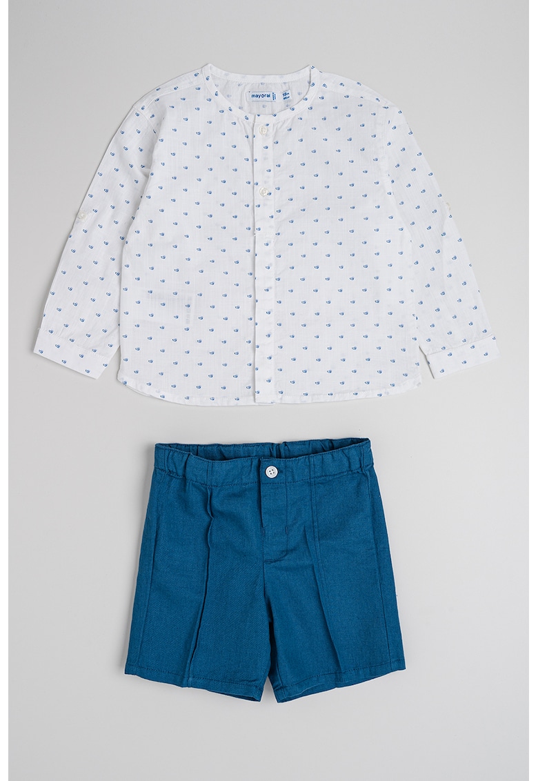 Caracteristici Continut pachet: camasa si pantaloni scurti Culoare: albastru inchis