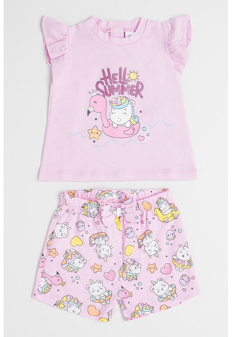 - roz Stil: casual Imprimeu: grafic Croiala: regular fit Material: bumbac Sistem inchidere: fara inchidere Decolteu: la baza gatului Lungime maneca: maneca scurta Lungime pantaloni: scurti Colectie: primavara
