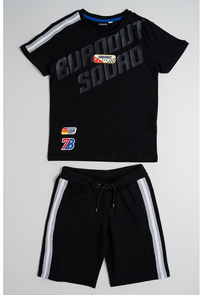 - negru Stil: casual Imprimeu: text Croiala: regular fit Material: bumbac Sistem inchidere: fara inchidere Decolteu: decolteu la baza gatului Lungime maneca: maneca scurta Lungime pantaloni: scurti Colectie: primavara