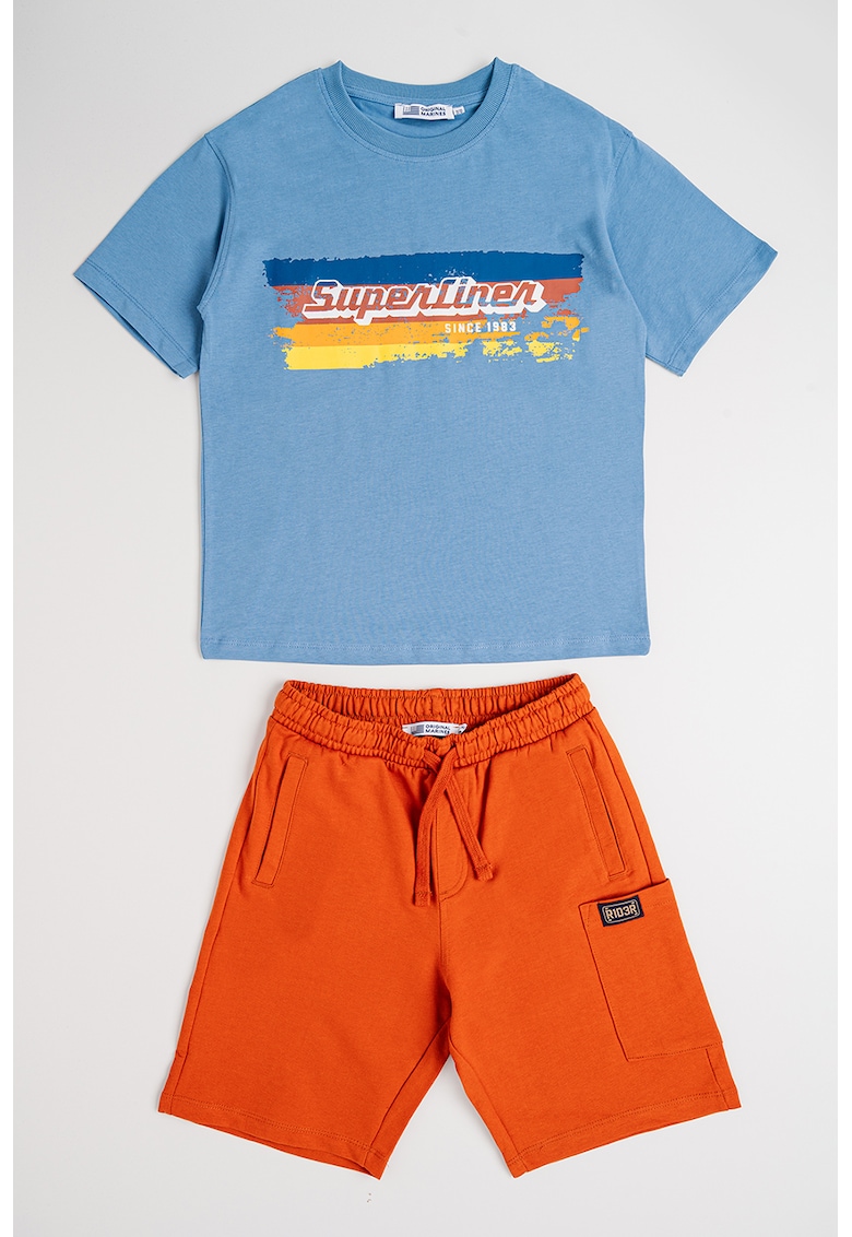 - portocaliu stins Stil: casual Imprimeu: grafic Croiala: regular fit Material: bumbac Sistem inchidere: fara inchidere Decolteu: la baza gatului Lungime maneca: maneca scurta Lungime pantaloni: scurti Colectie: primavara