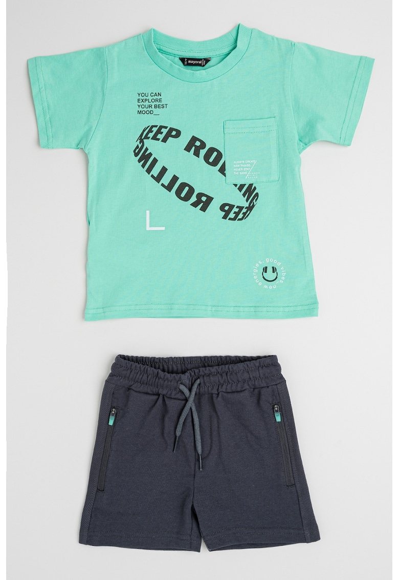 - gri antracit Stil: casual Imprimeu: text Croiala: regular fit Material: bumbac Sistem inchidere: fara inchidere Decolteu: la baza gatului Lungime maneca: maneca scurta Lungime pantaloni: scurti Buzunare: laterale