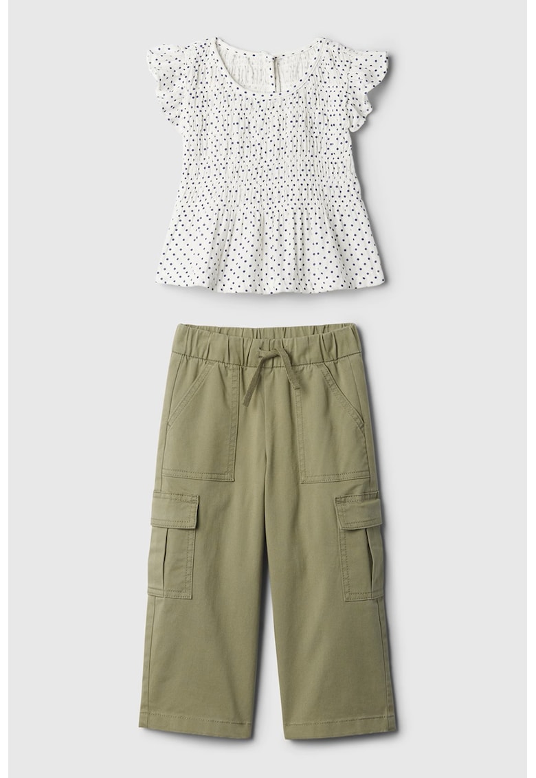 - kaki Stil: casual Imprimeu: buline Croiala: regular fit Material: bumbac Decolteu: rotund Lungime maneca: maneca scurta Lungime pantaloni: lungi Buzunare: multiple Detalii: snur elastic in talie