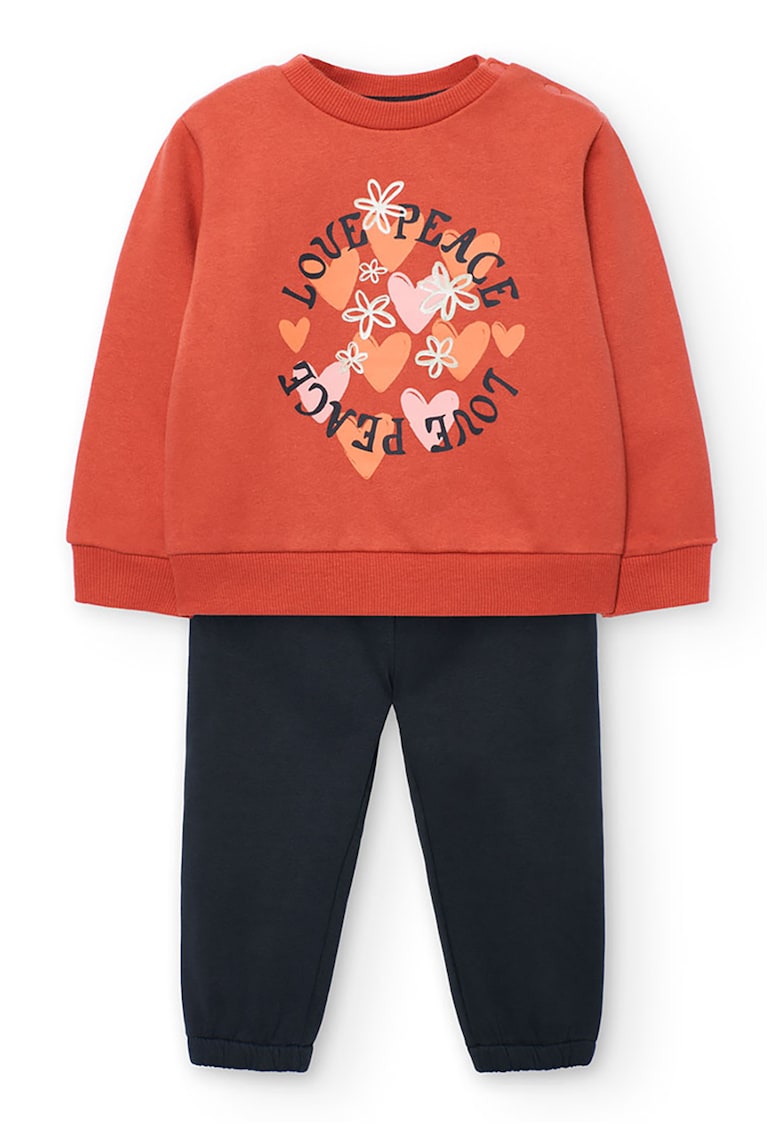 - text Material: bumbac Decolteu: la baza gatului Lungime maneca: maneca lunga Lungime pantaloni: lungi Detalii: cordon in talie Compozitie Exterior: 100% bumbac