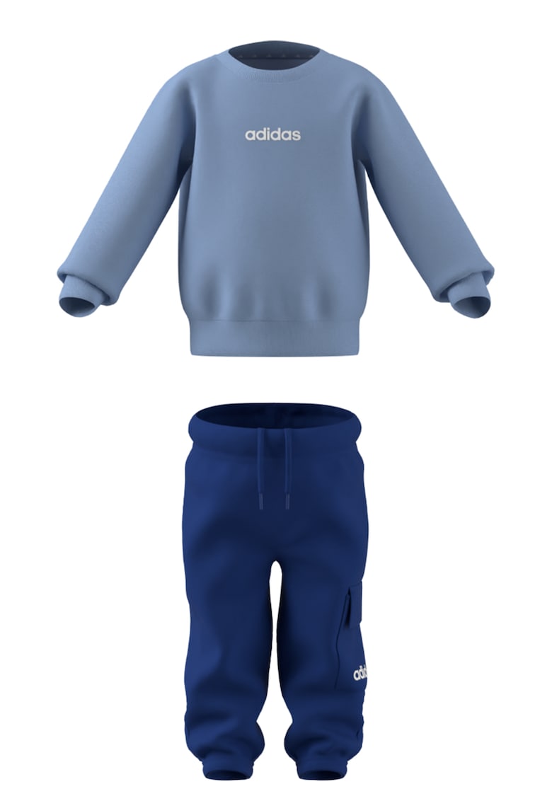 Caracteristici Continut pachet: bluza sport si pantaloni Culoare: albastru Imprimeu: logo Croiala: regular fit Material: poliester