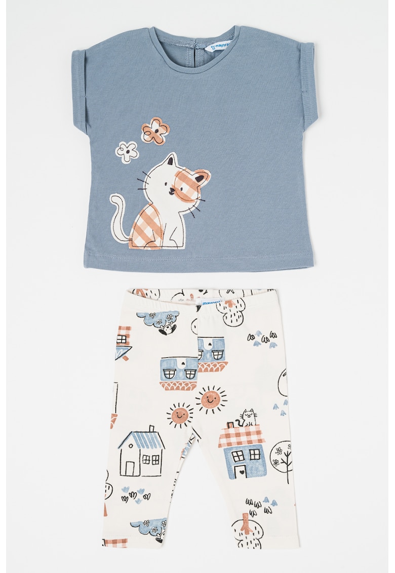 - albastru prafuit Stil: casual Imprimeu: desene animate Croiala: regular fit Material: bumbac Sistem inchidere: fara inchidere Decolteu: decolteu la baza gatului Lungime maneca: maneca scurta Lungime pantaloni: lungi Colectie: primavara
