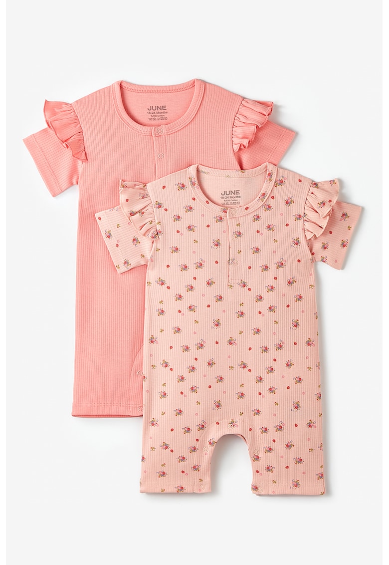 - roz Stil: casual Imprimeu: floral Croiala: regular fit Material: bumbac Decolteu: rotund Lungime maneca: maneca scurta Lungime pantaloni: scurti Colectie: primavara