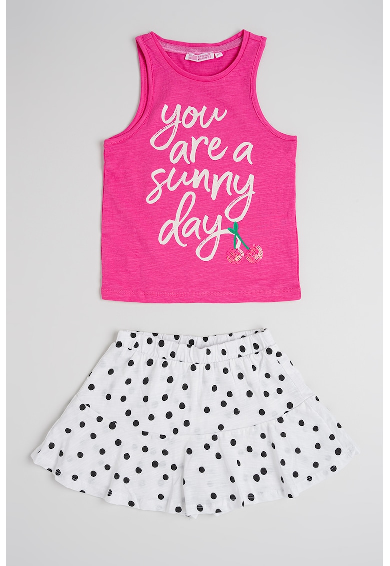Caracteristici Continut pachet: top si fusta-patalon Culoare: alb
