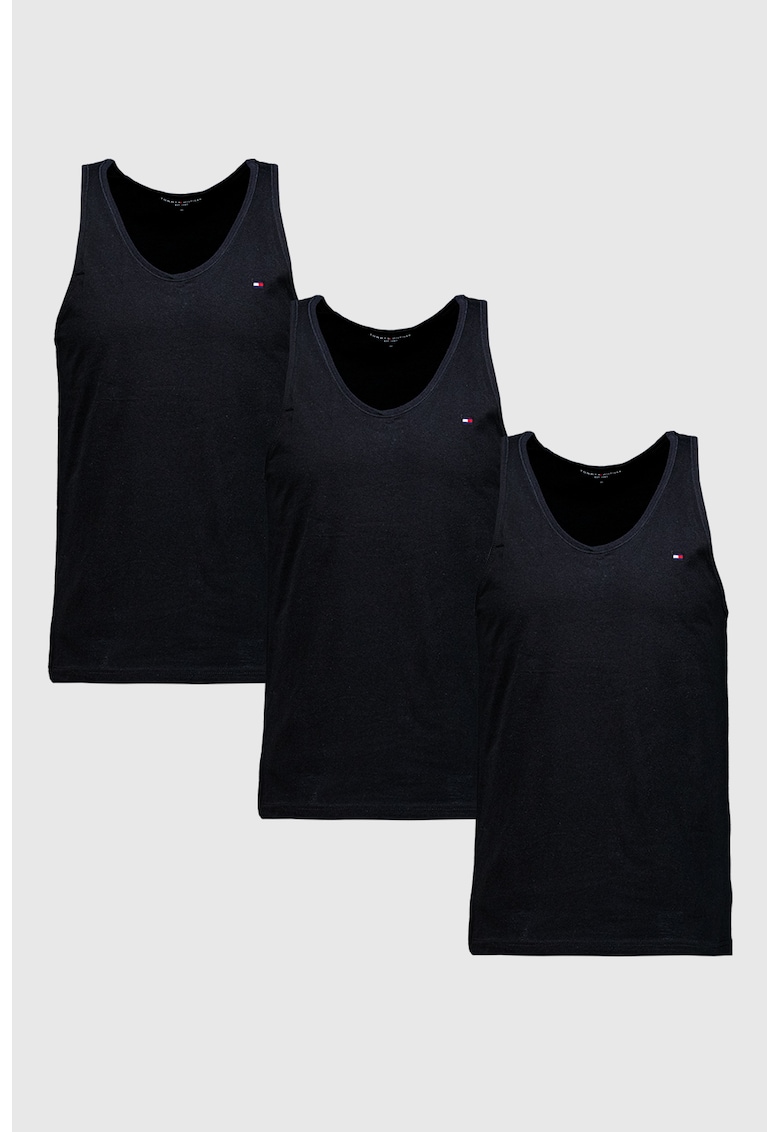 Caracteristici Culoare: negru Imprimeu: uni Material: bumbac Stil: casual Croiala: slim fit Decolteu: rotund Compozitie Exterior: 100% bumbac Info model Modelul poarta un produs de marimea M. Marimi model: 179 cm inaltime