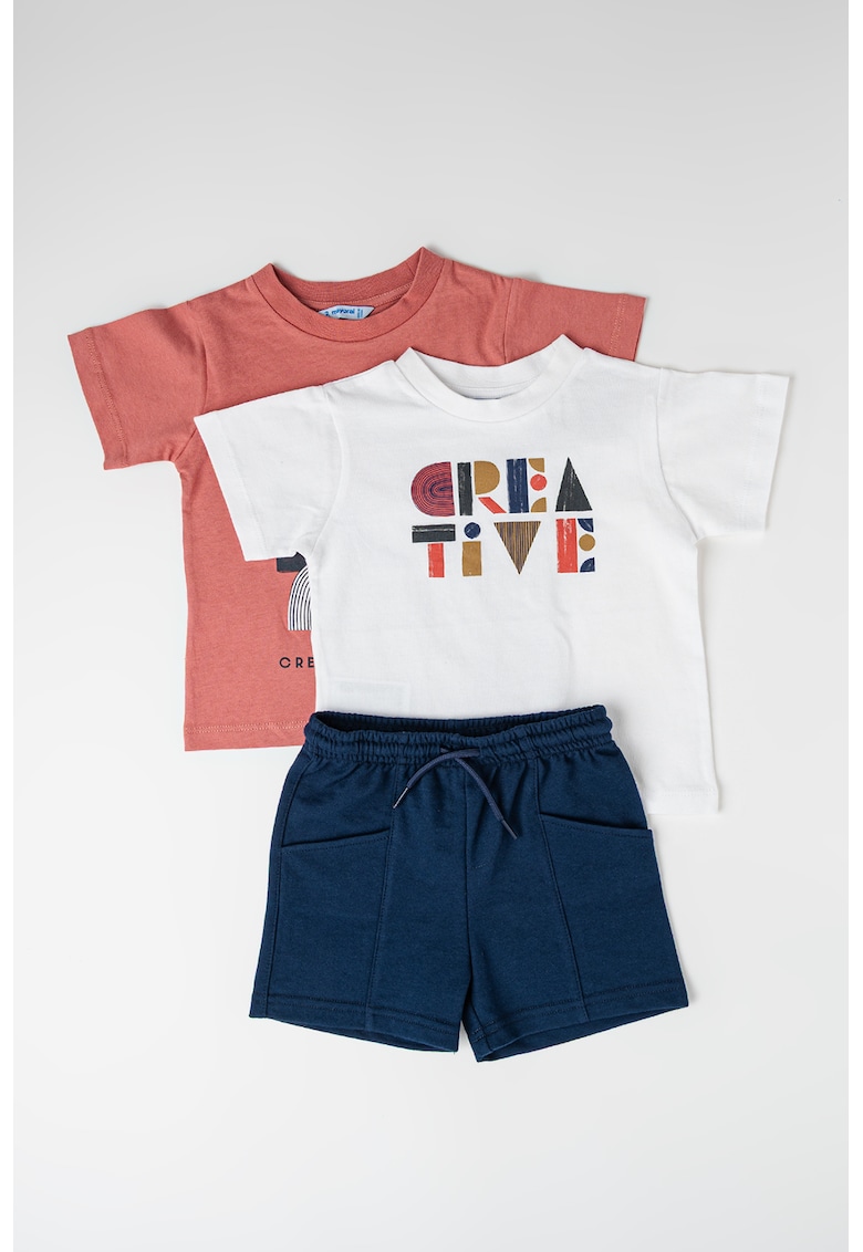 - bleumarin Stil: casual Imprimeu: grafic Croiala: regular fit Material: bumbac Sistem inchidere: fara inchidere Decolteu: decolteu la baza gatului Lungime maneca: maneca scurta Lungime pantaloni: scurti Colectie: primavara