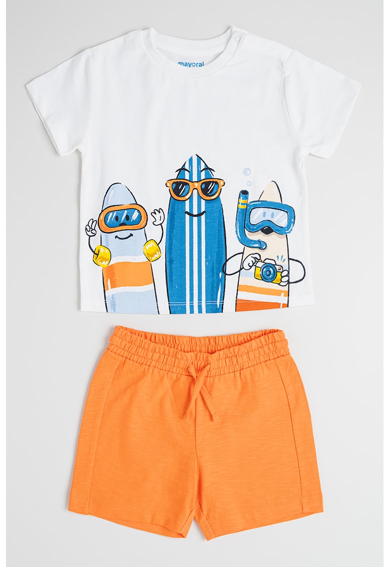 - portocaliu Stil: casual Imprimeu: grafic Croiala: regular fit Material: bumbac Sistem inchidere: fara inchidere Decolteu: la baza gatului Lungime maneca: maneca scurta Lungime pantaloni: scurti Detalii: snur pentru ajustare si insertie elastica in talie Colectie: primavara