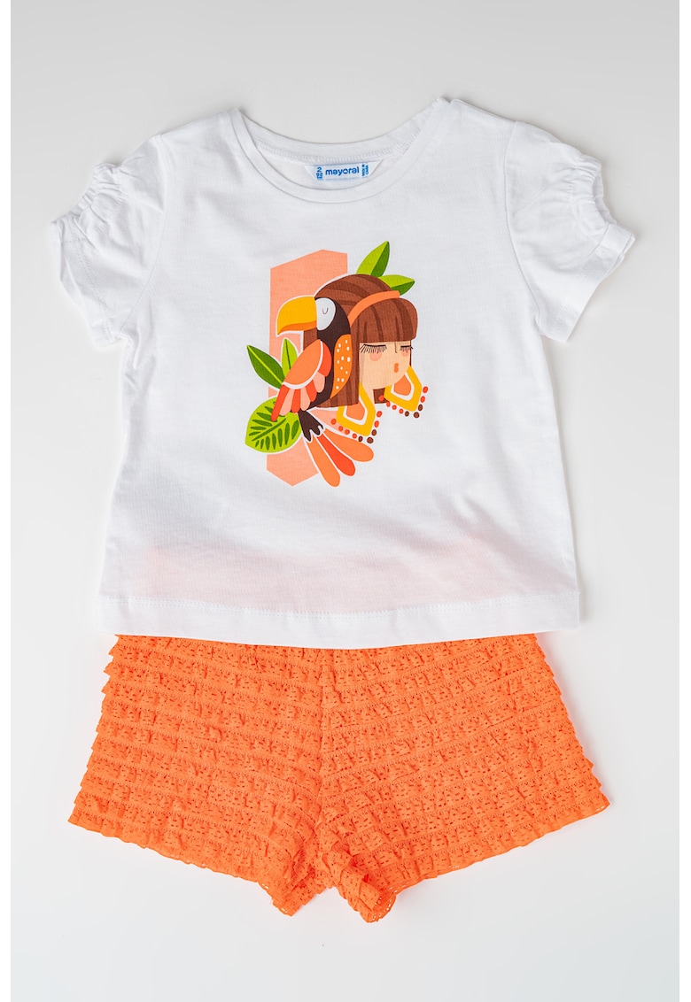 - portocaliu mandarina Stil: casual Imprimeu: grafic Croiala: regular fit Material: bumbac Sistem inchidere: fara inchidere Decolteu: la baza gatului Lungime maneca: maneca scurta Lungime pantaloni: scurti Colectie: primavara