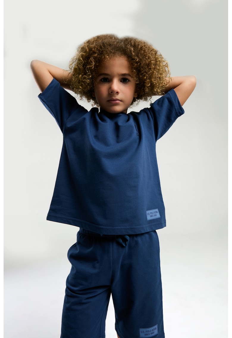 Caracteristici Continut pachet: tricou si pantaloni scurti Culoare: albastru inchis Stil: casual Imprimeu: logo Croiala: regular fit Material: bumbac Decolteu: la baza gatului Lungime maneca: maneca scurta Lungime pantaloni: scurti Compozitie Exterior: 100% bumbac