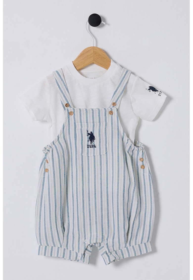 Caracteristici Continut pachet: salopeta si tricou Culoare: alb