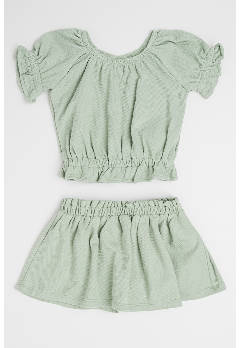 Caracteristici Continut pachet: tricou si fusta pantalon Culoare: verde deschis Stil: casual Imprimeu: uni Croiala: regular fit Material: sintetic