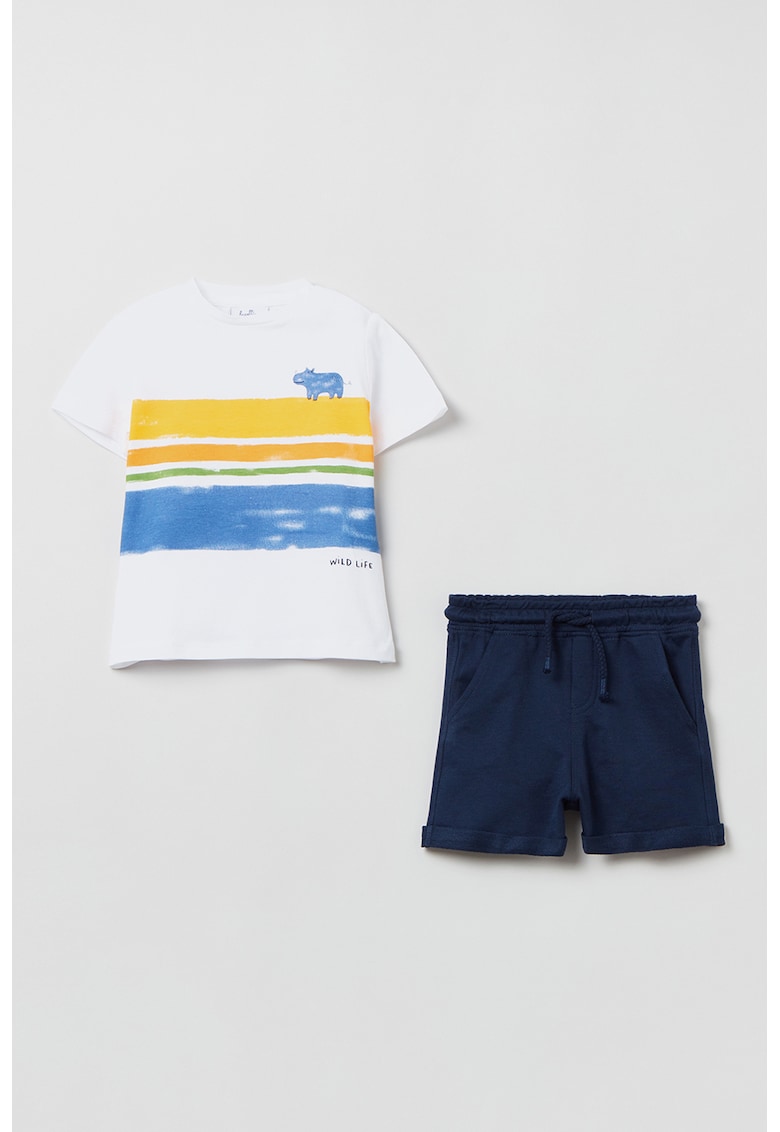 - bleumarin Stil: casual Imprimeu: uni Croiala: regular fit Material: bumbac Sistem inchidere: fara inchidere Decolteu: rotund Lungime maneca: maneca scurta Lungime pantaloni: lungi Detalii: snur elastic in talie