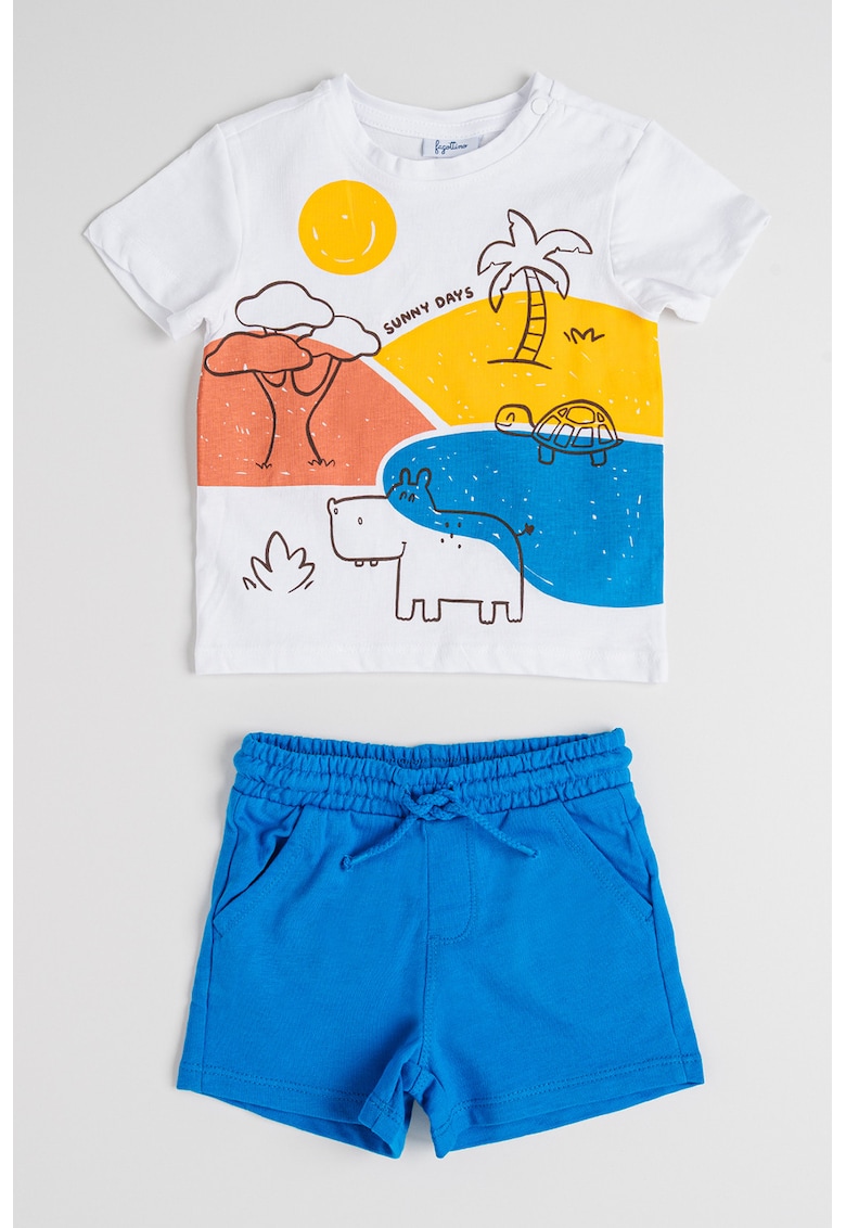 - albastru deschis Stil: casual Imprimeu: grafic Croiala: regular fit Material: bumbac Decolteu: rotund Lungime maneca: maneca scurta Lungime pantaloni: scurti Compozitie Exterior: 100% bumbac