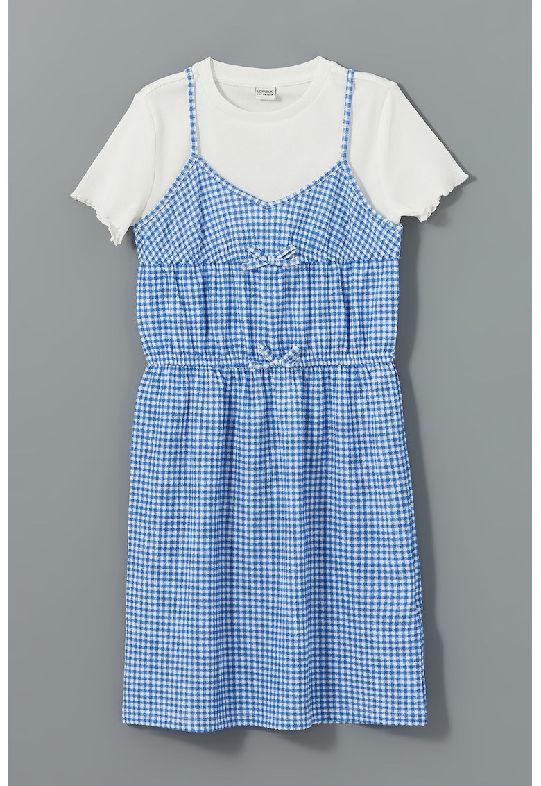 - albastru Stil: casual Imprimeu: carouri Croiala: evazat Material: sintetic