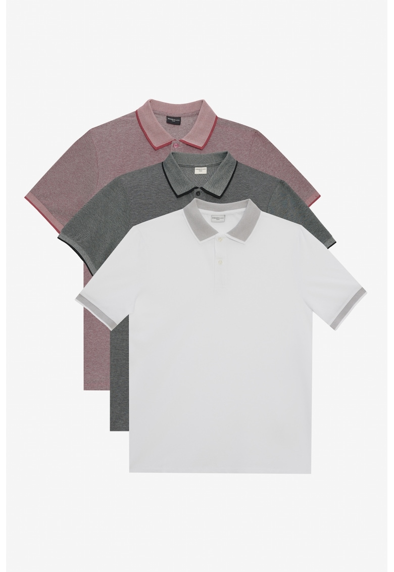 - rosu melage Imprimeu: uni Material: bumbac Croiala: regular fit Model: polo Lungime maneca: maneca scurta Detalii: fenta scurta cu nasturi