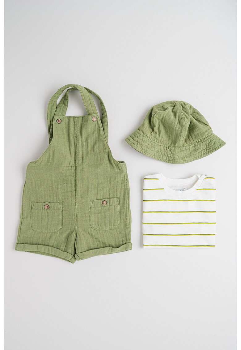 - galben mustar Stil: casual Imprimeu: dungi Croiala: regular fit Material: bumbac Sistem inchidere: fara inchidere Lungime maneca: maneca scurta Lungime pantaloni: lungi Colectie: primavara