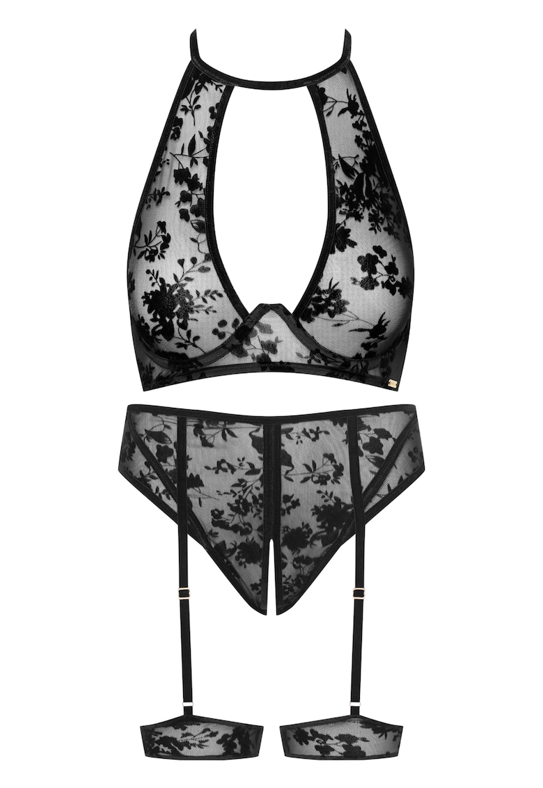 Caracteristici Tip produs: seturi si compleuri Culoare: negru Material: poliester Imprimeu: floral Sistem inchidere: capse Tip sutien: cu burete Stil chilot: tanga Forma cupa: clasic Sustinere metalica: fara sustinere metalica Barete: 2 bretele Continut pachet: 1 bikini