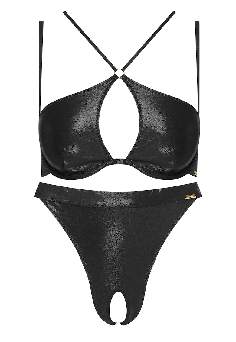 Caracteristici Tip produs: seturi si compleuri Culoare: negru Imprimeu: floral Sistem inchidere: capse Tip sutien: cu burete Stil chilot: tanga Forma cupa: acoperire partiala Sustinere metalica: fara sustinere metalica Barete: 2 bretele Continut pachet: 1 bikini