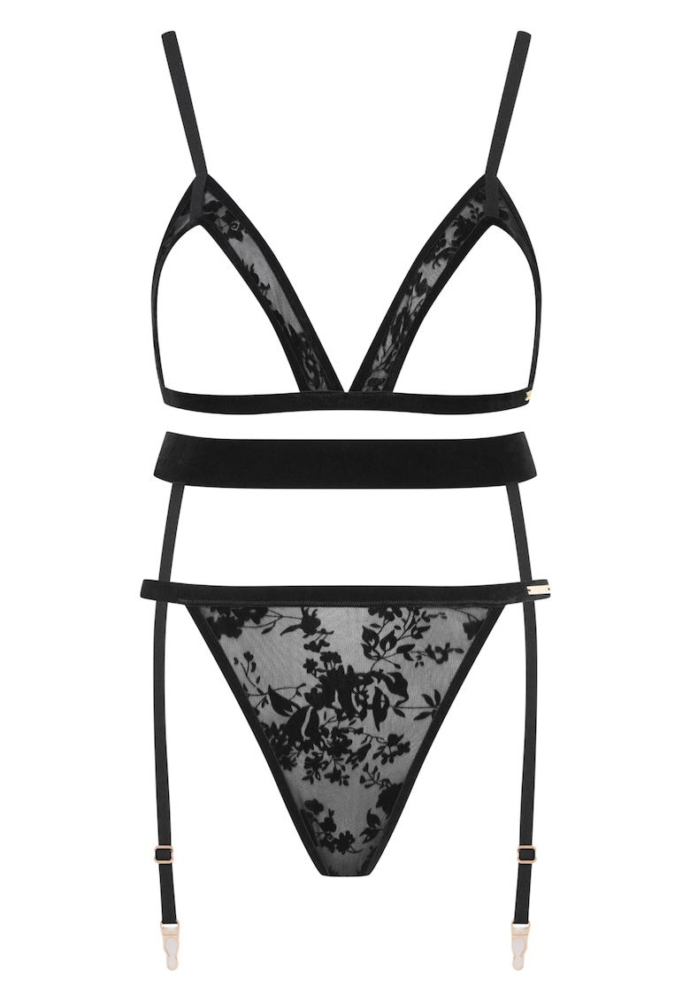 Caracteristici Tip produs: seturi si compleuri Culoare: negru Material: poliester Imprimeu: floral Sistem inchidere: capse Tip sutien: cu burete Stil chilot: tanga Forma cupa: clasic Sustinere metalica: fara sustinere metalica Barete: 2 bretele Continut pachet: 1 bikini
